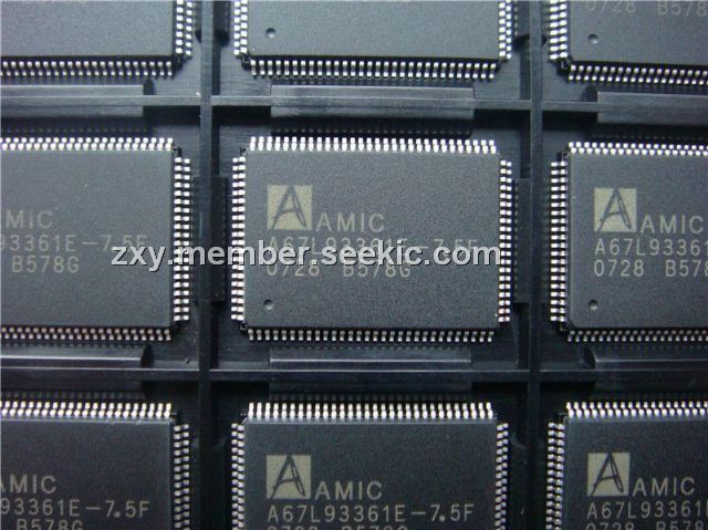 A67L93361E-7.5F features: (1)Fast access time: 6.5/7.5/8.5ns (153, 133, 117MHz); (2)Zero Bus Latency between READ and WRITE cycles allows 100% bus utilization; (3)Signal +3.3V ±5% power supply; (4)Individual Byte Write control capability; (5)Clock enable ( CEN) pin to enable clock and suspend operations; (6)Clock-controlled and registered address, data and control signals; (7)Registered output for pipelined applications; (8)Three separate chip enables allow wide range of options for CE control, address pipelining; (9)Internally self-timed write cycle; (10)Selectable BURST mode (Linear or Interleaved); (11)SLEEP mode (ZZ pin) provided; (12)Available in 100 pin LQFP package.