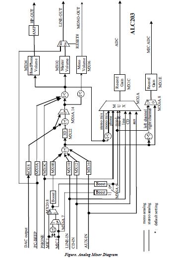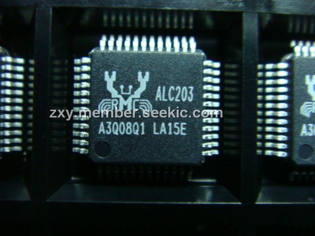 ALC203 features: (1)High quality differential CD input; (2)Two analog line-level mono input: PCBEEP, PHONE-IN; (3)Supports double sampling rate (96KHz) of DVD audio playback; (4)Two software selectable MIC inputs; (5)+6/12/20/30dB boost preamplifier for MIC input; (6)Stereo output with 6-bit volume control; (7)Mono output with 5-bit volume control; (8)Headphone output with 50mW/20兌 amplifier; (9)3D Stereo Enhancement; (10)Single chip with high S/N ratio (>100 dB); (11)Meets performance requirements for audio on PC99/2001 systems; (12)Meets Microsoft WHQL/WLP 2.0 audiorequirements; (13)20-bit DAC and 18-bit ADC resolution; (14)18-bit Stereo full-duplex CODEC with independent and variable sampling rate.