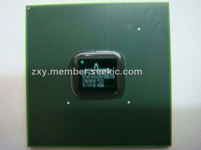 BCM7405ZKFEB01G features: (1)Advanced HD AVC/MPEG-2/VC-1 decoder; (2)Advanced audio processor supporting; (3)Advanced 2D-effects graphic engine; (4)Digital noise reduction (DNR); (5)Motion-adaptive deinterlacer with reverse 3:2/2:2 pulldown; (6)Letterbox detection; (7)Multiple simultaneous, independent DVR channels; (8)Open Cable ready with on-chip MPOD support; (9)300-MHz MIPS32?16e class processor; (10)64-bit DDR DRAM controller; (11)SATA I/F for DVR applications; (12)HD analog video encoder with simultaneous SD outputs; (13)HDMI 1.1/DVI 1.0 Mac and PHY with HDCP 1.1; (14)Broadcom security processor; (15)AES/1DES/3DES/CSS/CPRM/DTCP copy protection; (16)MPEG-2/DIRECTV/DVB/ARIB data transport demux with 1DES/3DES/DVB/Multi2/AES descramblers; (17)V.92-capable soft modem with integrated SiLab Si305x system side device; (18)3.3V 33-MHz PCI 2.2; (19)Dual USB 2.0 host controller with dual-port transceiver; (20)Additional independent USB 1.1 host controller; (21)Serial ATA interface; (22)Ethernet Mac and PHY; (23)UHF remote control receiver; (24)Dual smart card support.