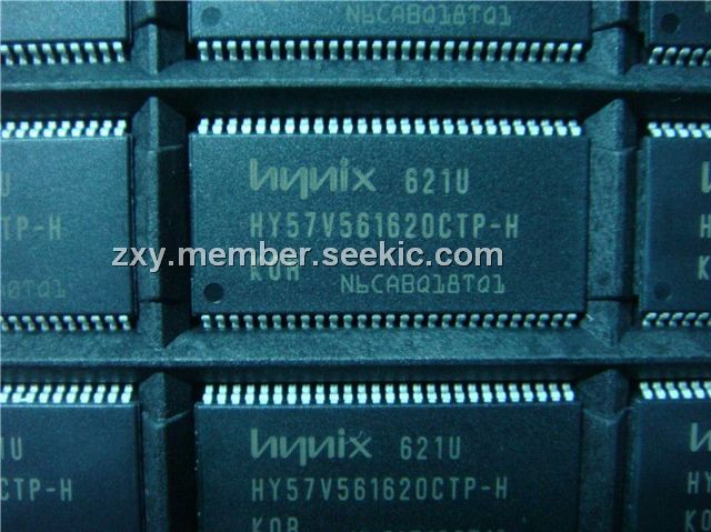 HY57V561620CTP-H features: (1)Single 3.3±0.3V power supply; (2)All device pins are compatible with LVTTL interface; (3)JEDEC standard 400mil 54pin TSOP-II with 0.8mm of pin pitch (Leaded Package or Lead Free Package); (4)All inputs and outputs referenced to positive edge of system clock; (5)Data mask function by UDQM, LDQM; (6)Internal four banks operation; (7)Auto refresh and self refresh; (8)8192 refresh cycles / 64ms ; (9)Programmable Burst Length and Burst Type: 1, 2, 4, 8 or Full page for Sequential Burst;1, 2, 4 or 8 for Interleave Burst; (10)Programmable CAS Latency ; 2, 3 Clocks.