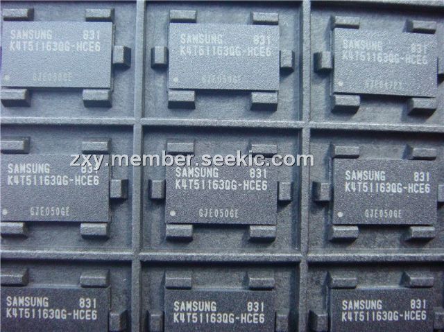 K4T51163QG-HCE6 features: (1)JEDEC standard VDD = 1.8V ± 0.1V Power Supply; (2)VDDQ = 1.8V ±0.1V; (3)200 MHz fCK for 400Mb/sec/pin, 267MHz fCK for 533Mb/sec/; (4)pin, 333MHz fCK for 667Mb/sec/pin, 400MHz fCK for 800Mb/; (5)sec/pin; (6)4 Banks; (7)Posted CAS; (8)Programmable CAS Latency: 3, 4, 5, 6; (9)Programmable Additive Latency: 0, 1 , 2 , 3, 4 , 5; (10)Write Latency(WL) = Read Latency(RL) -1; (11)Burst Length: 4 , 8(Interleave/Nibble sequential); (12)Programmable Sequential / Interleave Burst Mode; (13)Bi-directional Differential Data-Strobe (Single-ended datastrobe is an optional feature); (14)Off-Chip Driver(OCD) Impedance Adjustment; (15)On Die Termination; (16)Special Function Support -50ohm ODT; -High Temperature Self-Refresh rate enable; (17)Average Refresh Period 7.8us at lower than TCASE 85℃, 3.9us at 85℃ < TCASE < 95 ℃; (18)All of products are Lead-Free, Halogen-Free, and RoHS compliant.