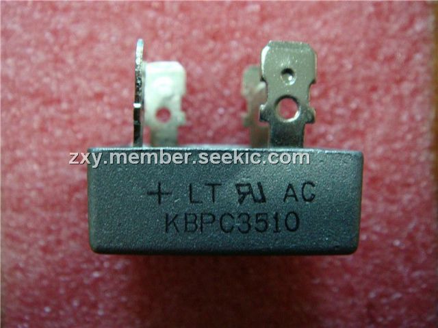 KBPC3510 absolute maximum ratings: (1)Maximum recurrent peak reverse voltage VRRM: 1000V; (2)Maximum RMS voltage VRMS: 700V; (3)Maximum DC blocking voltage VDC: 1000V; (4)Maximum average forward output current @ Tc=55℃ I(AV): 35.0A; (5)Peak forward surge current 8.3ms single half-sine-wave superimposed on rated load(JEDEC method) IFSM: 400A; (6)Maximum forward voltage per bridge element at 17.5A DC VF: 1.2V; (7)Maximum DC reverse current at rated @ TA=25℃ IR: 10μA; (8)I2t rating for fusing(t<8.3ms) I2t: 664A2S; (9)Typical thermal resistance RTHJC: 2.5℃/W; (10)Operating temperature range Tj: -55 to +125℃; (11)Storage temperature range Tstg: -55 to +150℃.