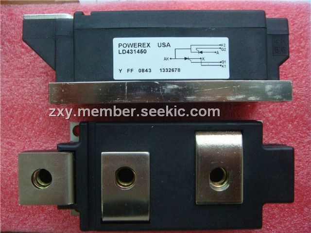 LD431450 absolute maximum ratings: (1)Repetitive Peak Forward and Reverse Blocking Voltage: up to 1600V; (2)Non-Repetitive Peak Blocking Voltage (t<5 msec): VRRM + 100V; (3)RMS Forward Current IT(RMS): 900A; (4)Average Forward Current: 500A; (5)Peak One Cycle Surge Current, Non-Repetitive 60 Hz, 100% VRRM reapplied: 17000A; (6)Peak Three Cycle Surge Current, Non-Repetitive 60 Hz, 100%VRRM reapplied ITSM: 12,250A; (7)Peak Ten Cycle Surge Current, Non-Repetitive 60 Hz, 100% VRRM reapplied ITSM: 10,500A; (8)Operating Temperature TJ: -40℃ to +130℃; (9)Storage Temperature Tstg: -40℃ to +150℃.