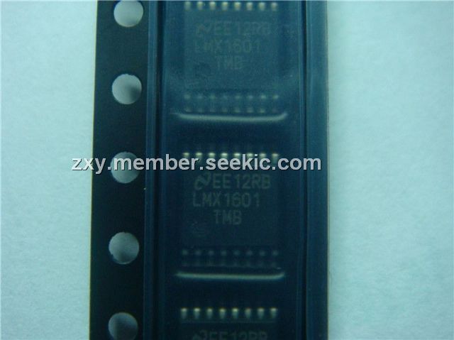 LMX1601TMB features: (1)VCC = 2.7V to 3.6V operation; (2)Low current consumption: 4mA @ 3V (typ) for LMX1601; (3)PLL Power down mode: ICC = 1μA typical; (4)Dual modulus prescaler: 2 GHz/500 MHz option: (Main) 32/33 (Aux) 8/9, 1.1 GHz/500 MHz option: (Main) 16/17 (Aux) 8/9, 1.1 GHz/1.1 (Main) 16/17 (Aux) 16/17; (5)Digital Filtered Lock Detects.