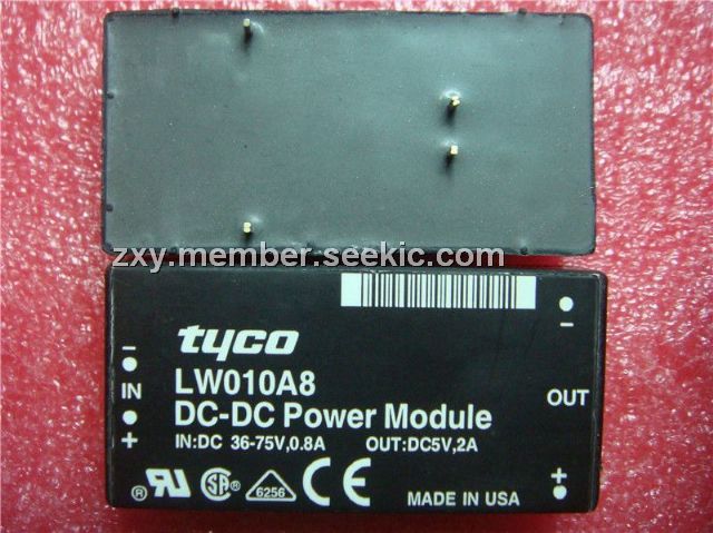LW010A8 features: (1)Low profile: 10.2mm×25.4mm×50.8mm (0.4 in.×1.0 in.×2.0 in.) with standoffs (9.6mm (0.38 in.) with standoffs recessed); (2)Wide input voltage range: 18Vdc to 36Vdc or 36Vdc to 75Vdc; (3)Output current limiting, unlimited duration; (4)Output overvoltage clamp; (5)Undervoltage lockout; (6)Input-to-output isolation: 1500 V; (7)Operating case temperature range: -40℃ to +105℃; (8)UL* 1950 Recognized, CSA 22.2 No. 950-95 Certified, IEC950, and VDE0805 Licensed; (9)CE mark meets 73/23/EEC and 93/68/EEC directives; (10)Within FCC and VDE Class A radiated limits.