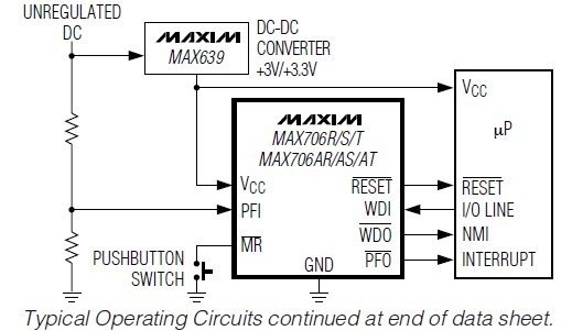 MAX706TCUA features: (1)μMAX Package, Small 8-Pin SO; (2)200ms Reset Time Delay; (3)Debounced TTL/CMOS-Compatible Manual Reset Input; (4)100μA Quiescent Current; (5)WDI Disable Feature; (6)Watchdog Timer: 1.6s Timeout; (7)Voltage Monitor for Power-Fail or Low-Battery Warning; (8)8-Pin Surface-Mount Package; (9)Guaranteed RESET Assertion to VCC = 1V.