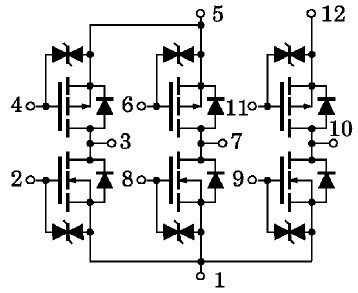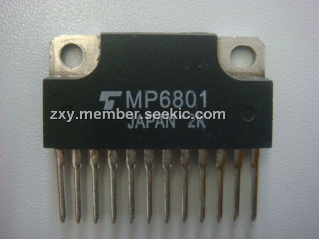 MP6801 features: (1)4-volt gate drive; (2)Package with heat sink isolated to lead(SIP 12pin); (3)High drain power dissipation: PT=40W @ TC=25℃(6 device operation); (4)Low drain-source ON resistance: RDS(ON)=55mΩ(typ)(N-ch)/90mΩ(typ)(P-ch); (5)Low leakage current: IGSS=±10μA(max)@VDS=±16V; IDSS=±100μA(max)@VDS=60V; (6)Enhancement-mode: Vth=0.8~2.0V @ ID=1mA.