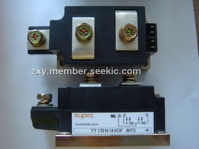 The TT170N14KOF is a Phase Control Thyristor Module. The dual SCR module comes in industry standard packages offering three different circuits. The TT170N14KOF can be used individually or as power control building blocks. Its high thermal efficiency assures long life and reliable performance. Six different package sizes allow for a maximum output current of 570 amps for standard scr modules and 200 amps for fast switching versions. Blocking voltages are available as high as 3600 volts for standard SCR and 1300 volts for fast switching modules. Switching times are as low as 18 microseconds.