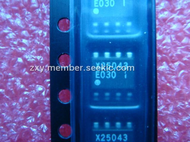 X25043E features: (1)Programmable Watchdog Timer; (2)Low VCC Detection; (3)Reset Signal Valid to VCC = 1V; (4)1MHz Clock Rate; (5)512×8 Bits Serial E2PROM 4 Byte Page Mode; (6)Low Power CMOS: 50μA Standby Current, 3mA Active Current; (7)2.7V To 5.5V Power Supply; (8)Block LockTM protect 1/4, 1/2 or all of E2PROM Array; (9)Built-in Inadvertent Write Protection: Power-Up/Power-Down protection circuitry, Write Latch, Write Protect Pin; (10)High Reliability: Endurance: 100,000 cycles per byte, Data Retention: 100 Years, ESD protection: 2000V on all pins; (11)Available Packages: 8-Lead PDlP, 8-Lead SOIC; (12)4-Lead TSSOP; (13)X25043 = Active LOW RESET; (14)X25045 = Active HIGH RESET.